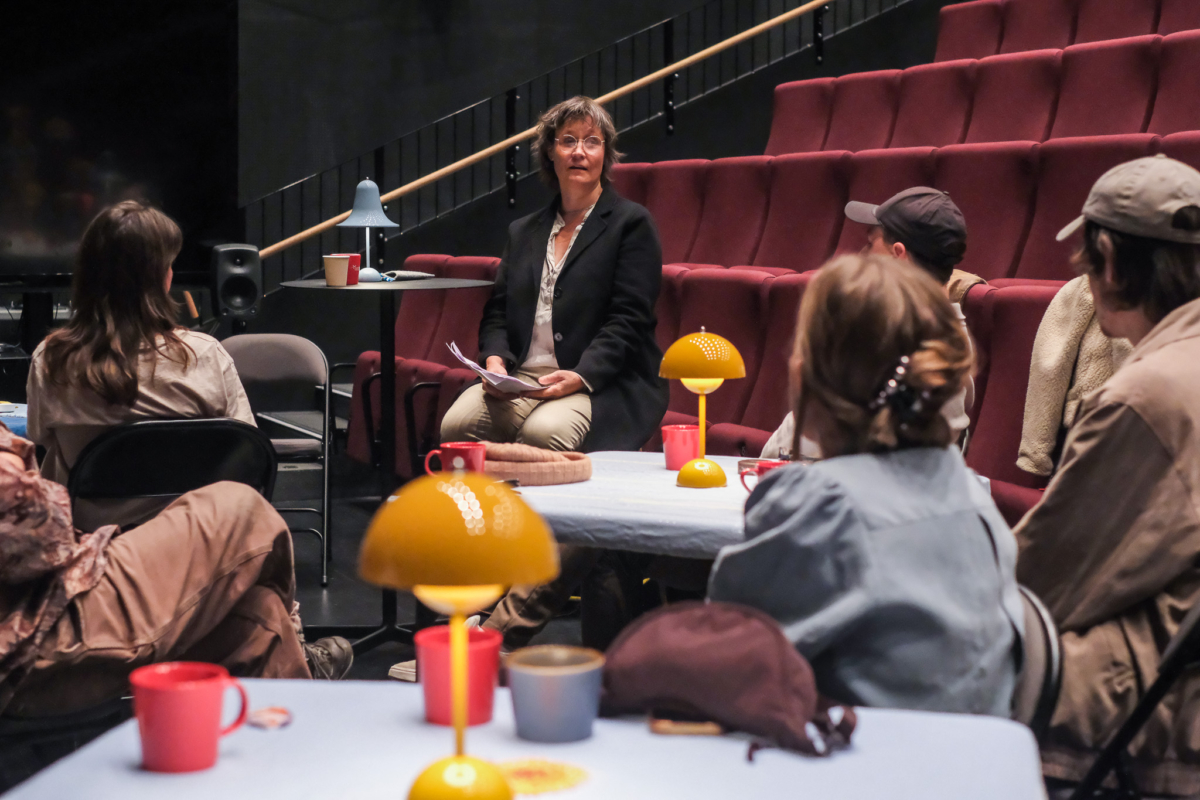 I det rikhaldige programmet for dagen stod mellom anna bransjetreff for regionens scenekunstnarar. Bransjetreffet fann stad i teatersalen, trykt inn mellom amfiet og sceneteppet, som ein god klem. Bakanfor var det rigga til «Eg er Lucy Barton» seinare på kvelden.