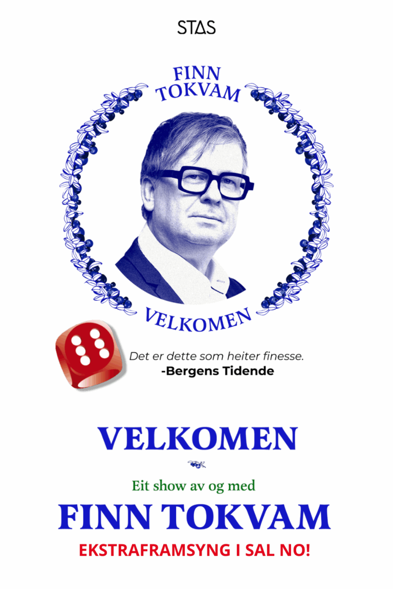 Soloshowet til Finn Tokvam – Velkomen – selde ut to fulle salar i Nynorskhuset i april. Vi tok fanden til hjelp og planla to ekstraframsyningar no i slutten av oktober, og korleis går det?